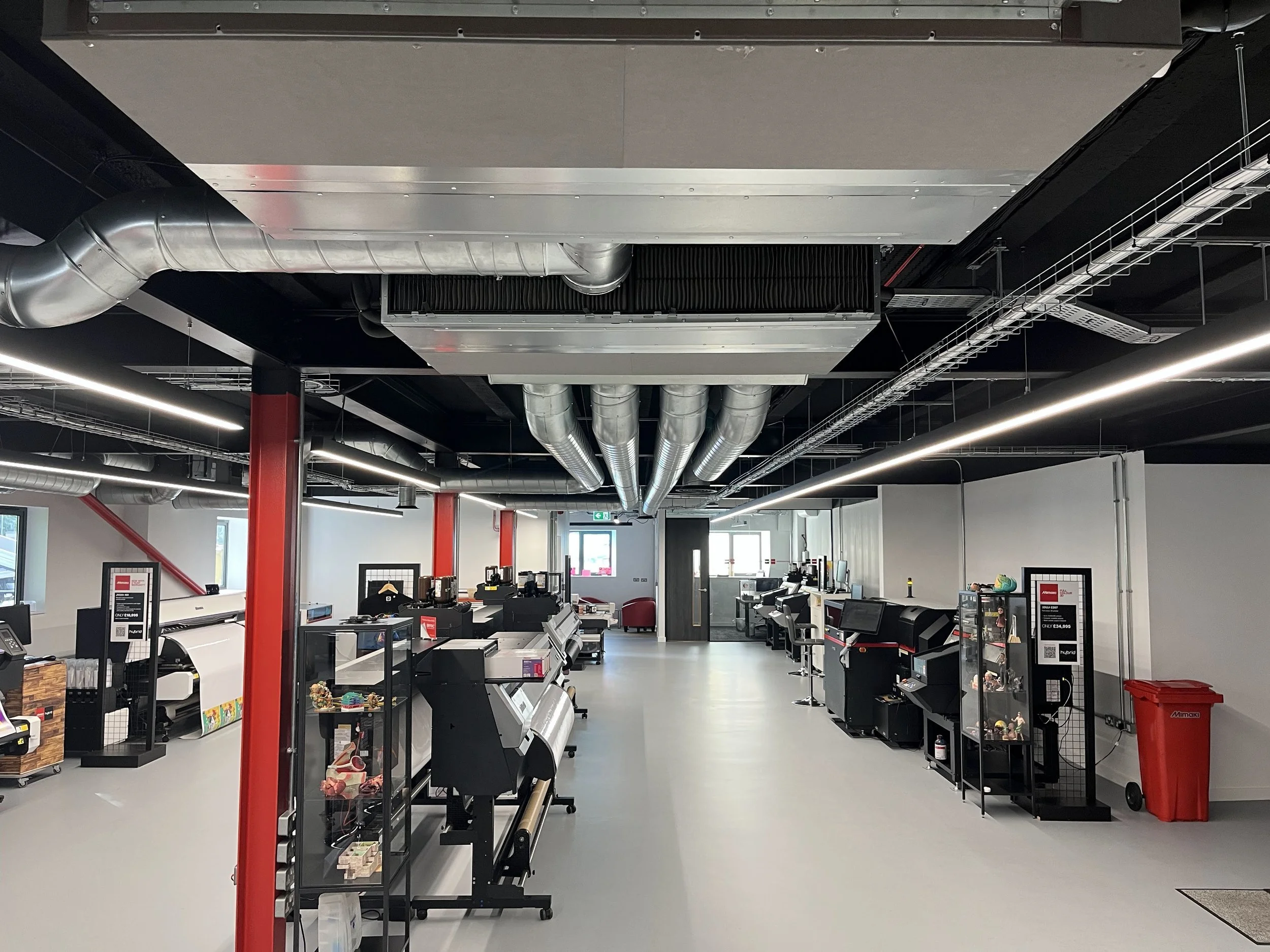 Hybrid Services, the UK distributor of Mimaki, has embarked on a notable enhancement of their headquarters in Crewe. The initiative centers around two key objectives: upgrading the first-floor office area and creating a more spacious and well-equipped product showroom, accompanied by areas designated for client meetings.